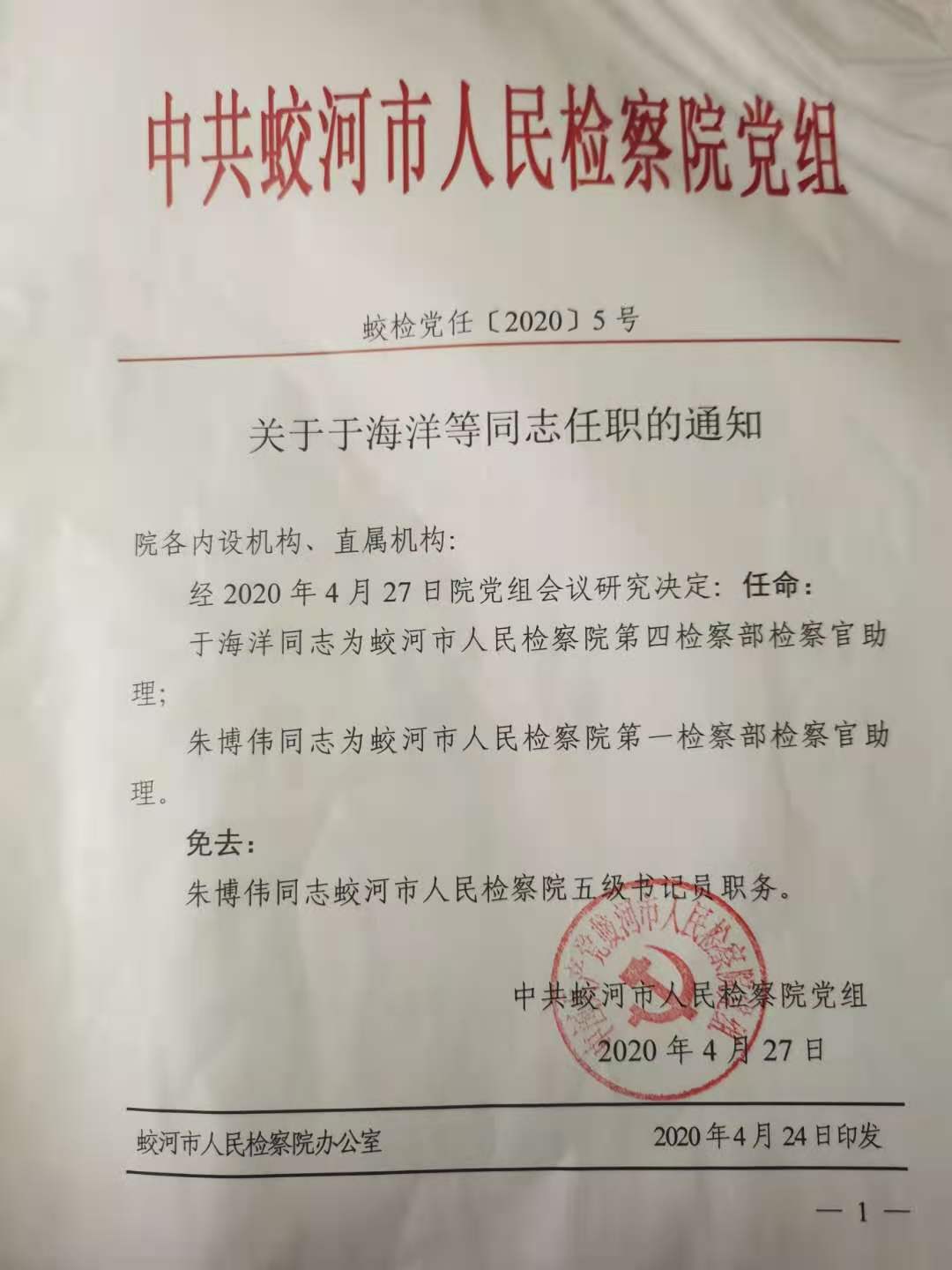 中共365bet网上平台_365系统维护_365体育黑钱吗人民检察院党组关于于海洋等同志任职的通知